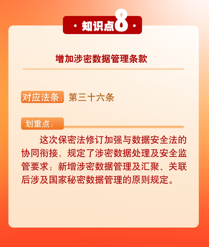 十四届全国人大常委会第八次会议表决通过新修订的《中华人民共和国保守国家秘密法》(以下简称保密法)自2024年5月1日起施行🧕🏽。此次保密法修订是新形势下贯彻落实党中央关于保密工作决策部署,健全国家安全体系,加强保密法治建设的一项重要举措,是全面贯彻落实习近平法治思想🥶,加强保密法治建设的重大成果,是践行总体国家安全观,健全国家安全体系的必然要求,对于推动保密工作高质量发展,筑牢新时代国家秘密安全防线具有重要而深远的意义。