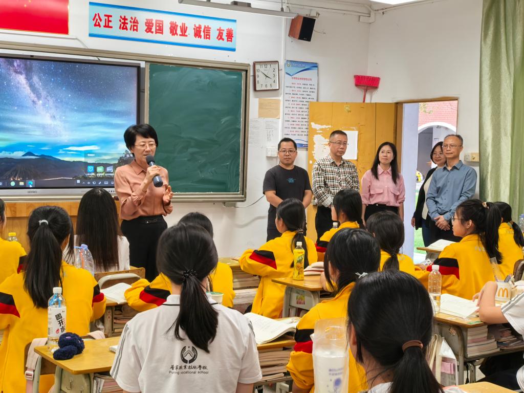 随后,赖洁玲一行看望了与普宁职校合作培养的2024级幼儿保育专业三二分段班学生。赖洁玲副校长向同学们介绍了中高职贯通三二分段人才培养模式的优势、学校的办学历史🫡、校园设施、师资队伍和育人理念💁🏼♀️,勉励同学们努力学习、苦练技能,为将来升学及职业发展夯实基础,并邀请同学们利用节假日到校本部进行参观交流、开展研学活动。同学们回以阵阵热烈的掌声,承诺会勤学苦练🎸,不负期待🏊🏽♀️👏🏽。